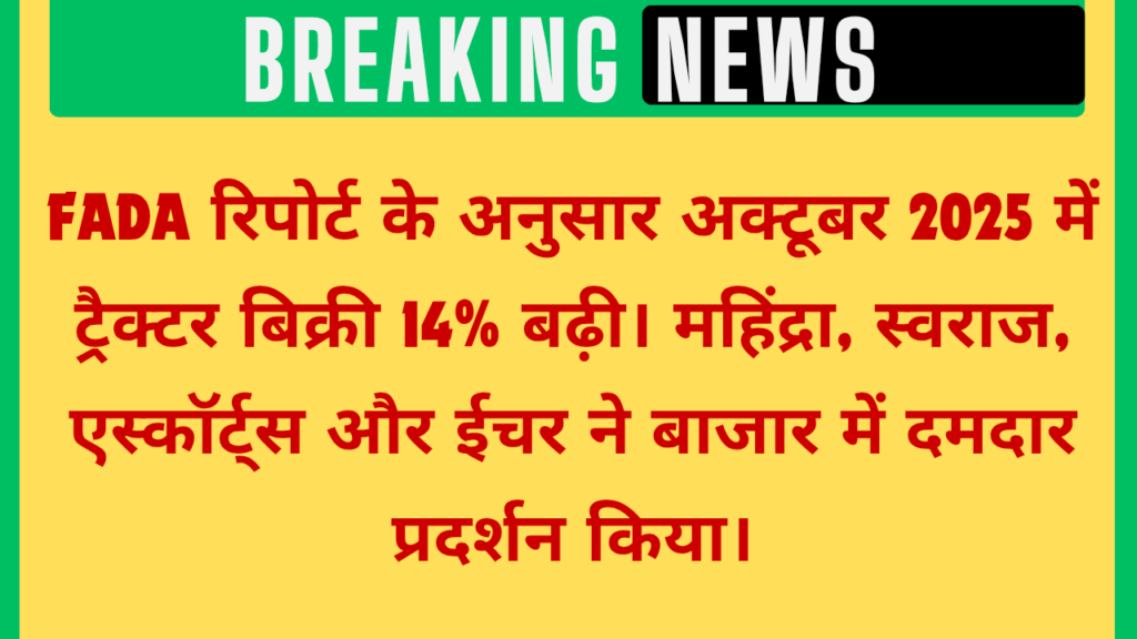 अक्टूबर 2025 में ट्रैक्टर बिक्री में रिकॉर्ड उछाल – महिंद्रा, स्वराज और एस्कॉर्ट्स ने दिखाई जबरदस्त ग्रोथ, ग्रामीण बाजार में लौटी रौनक