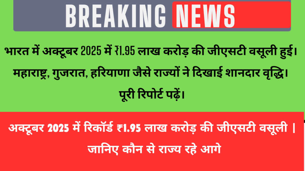 अक्टूबर 2025 में रिकॉर्ड स्तर पर पहुँची जीएसटी वसूली – मजबूत अर्थव्यवस्था और बढ़ते उपभोग का प्रमाण