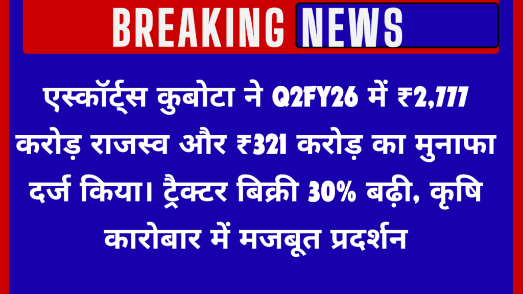 एस्कॉर्ट्स कुबोटा लिमिटेड का Q2FY26 प्रदर्शन शानदार – ट्रैक्टर बिक्री में 30% की बढ़ोतरी, मुनाफा ₹321.2 करोड़ तक पहुंचा