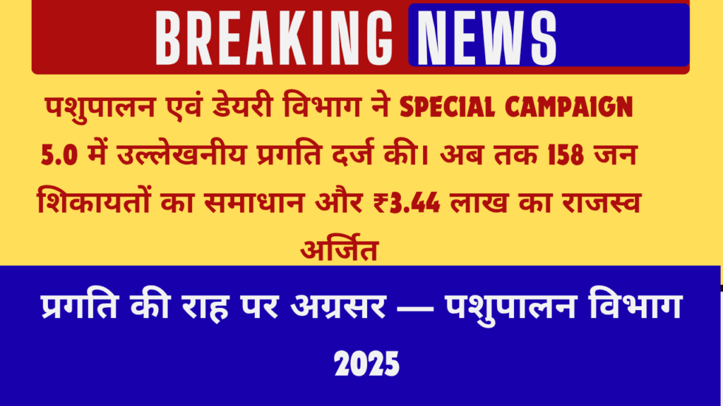 पशुपालन एवं डेयरी विभाग ने पांचवें विशेष अभियान में दर्ज की उल्लेखनीय प्रगति — अब तक 158 जन शिकायतों का सफल समाधान