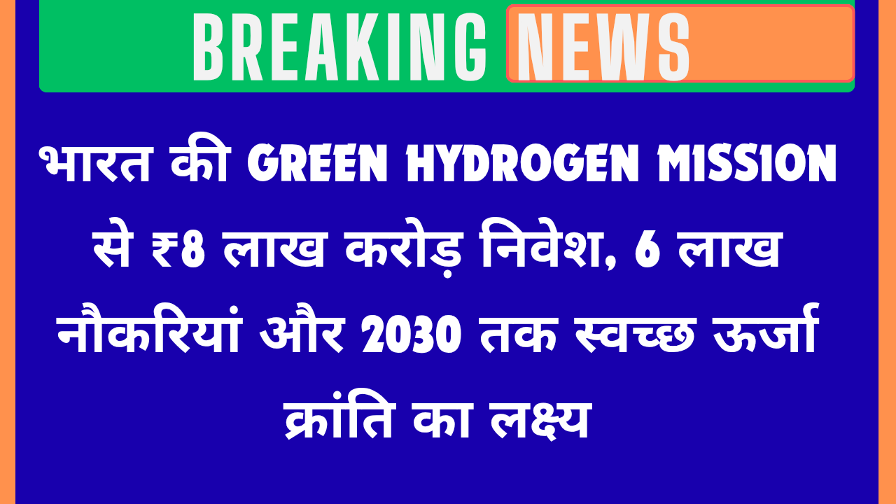 भारत की ग्रीन हाइड्रोजन क्रांति: आत्मनिर्भर ऊर्जा की दिशा में बड़ा कदम, 2030 तक ₹8 लाख करोड़ निवेश और 6 लाख नई नौकरियां