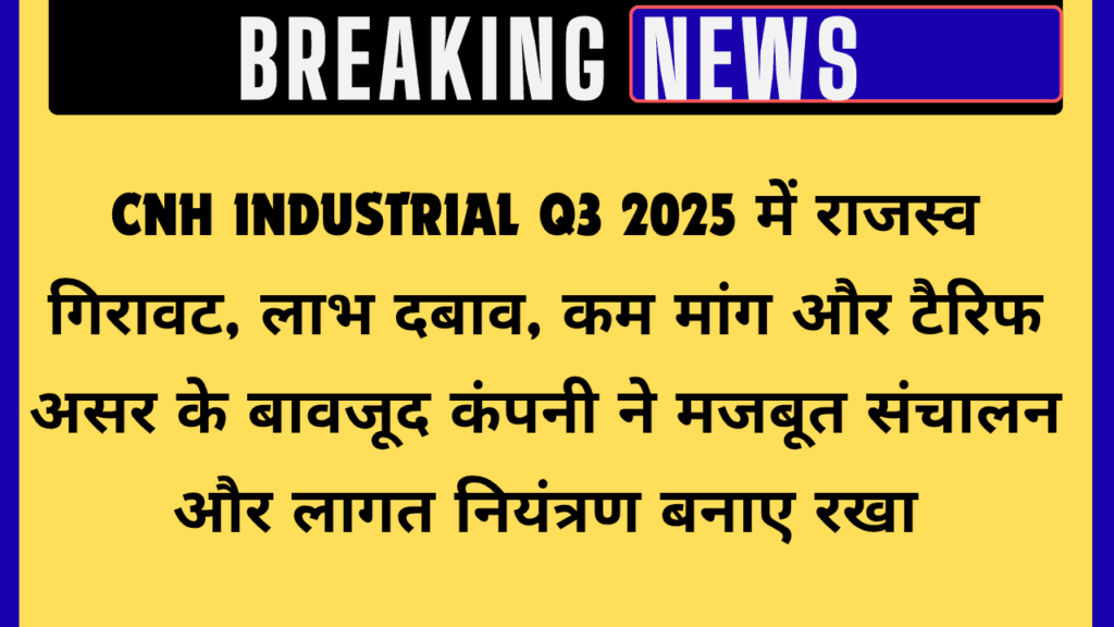 बेसिलडन, यूके, 7 नवंबर 2025 — कृषि और निर्माण मशीनरी उद्योग की वैश्विक अग्रणी कंपनी CNH Industrial N.V. ने वर्ष 2025 की तीसरी तिमाही (Q3 2025) के वित्तीय परिणाम जारी किए। रिपोर्ट के अनुसार कंपनी को इस अवधि में लगातार चुनौतीपूर्ण बाजार परिस्थिति, कम होती इंडस्ट्री डिमांड, बढ़ते टैरिफ प्रेशर, और जारी चैनल डेस्टॉकिंग के बीच भी मजबूती से संचालन जारी रखने में सफलता मिली है। कंपनी ने बताया कि उसका मुख्य ध्यान ऑपरेशनल क्षमता बढ़ाने, लागत प्रबंधन को मजबूत करने और दीर्घकालिक विकास रणनीति पर केंद्रित रहा है।